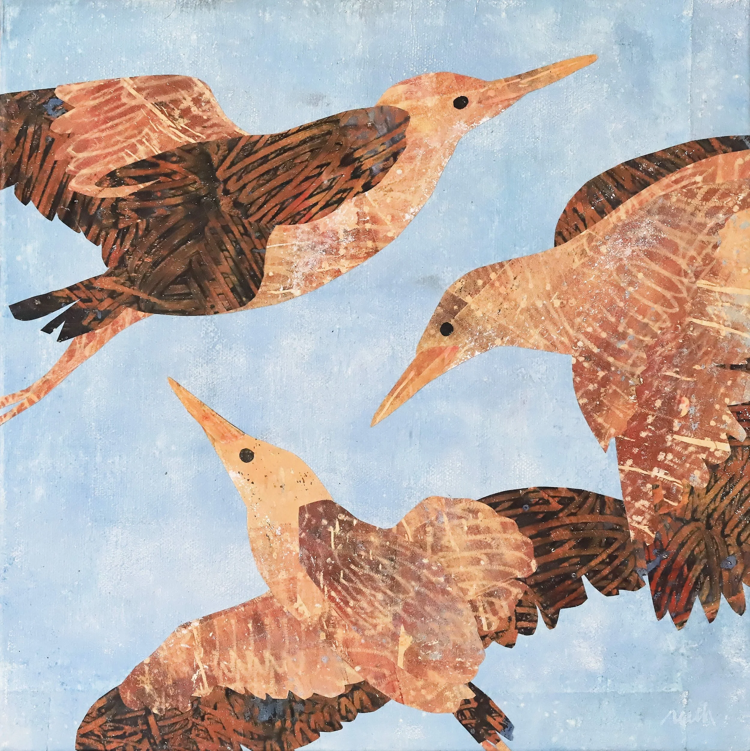 Birds make me feel happy and hopeful—they’re little reminders of the beauty in our natural world. These collages celebrate that joy. Some show shorebirds exploring the beach or flying overhead, and others are inspired by the “Search for Lost Birds.”
